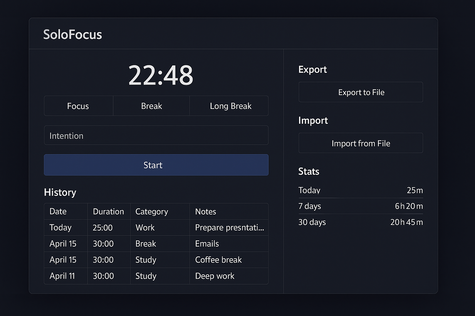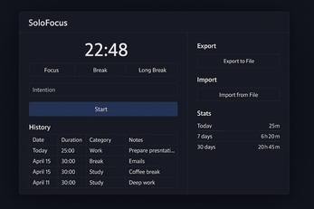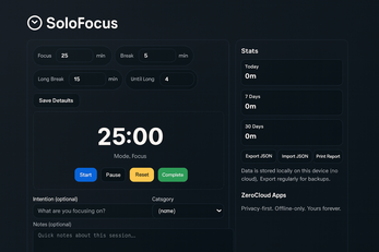 SoloFocus is a distraction-free focus timer built for privacy and simplicity.